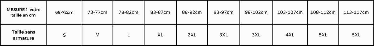 Tailles pour les soutien-gorges sans armature ci-dessous :