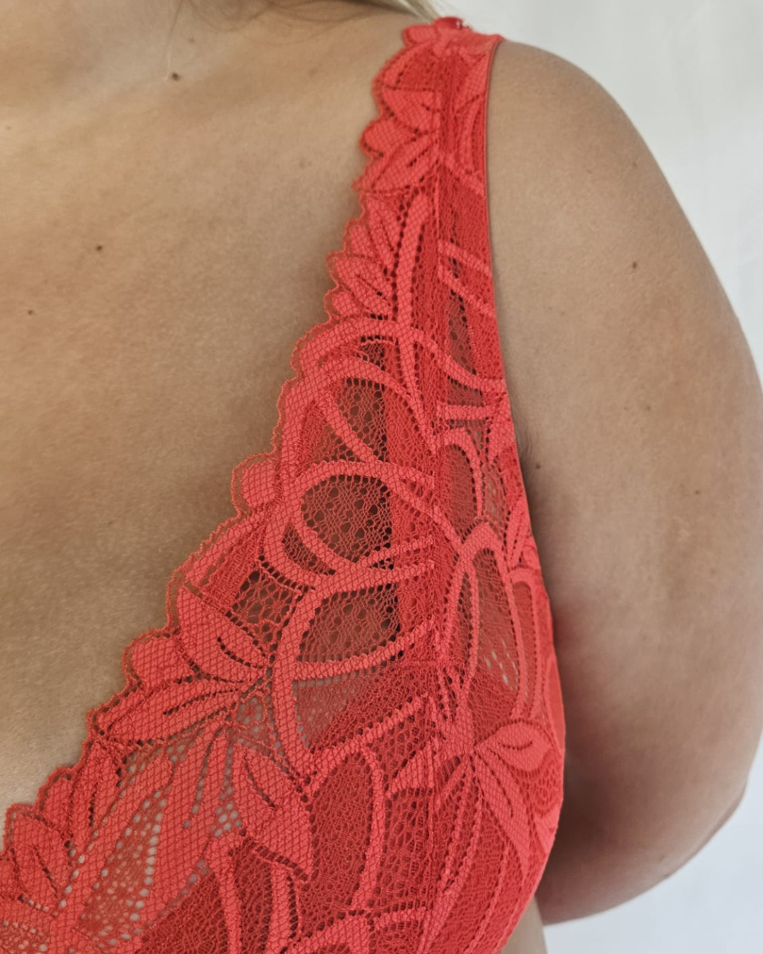 Coupe soigneusement travaillée pour mettre en valeur le galbe des fortes poitrines. Une bande à l'intérieur permet de remonter la poitrine tout en restant confortable. La dentelle de Calais certifie la qualité et la durabilité de la création ✨