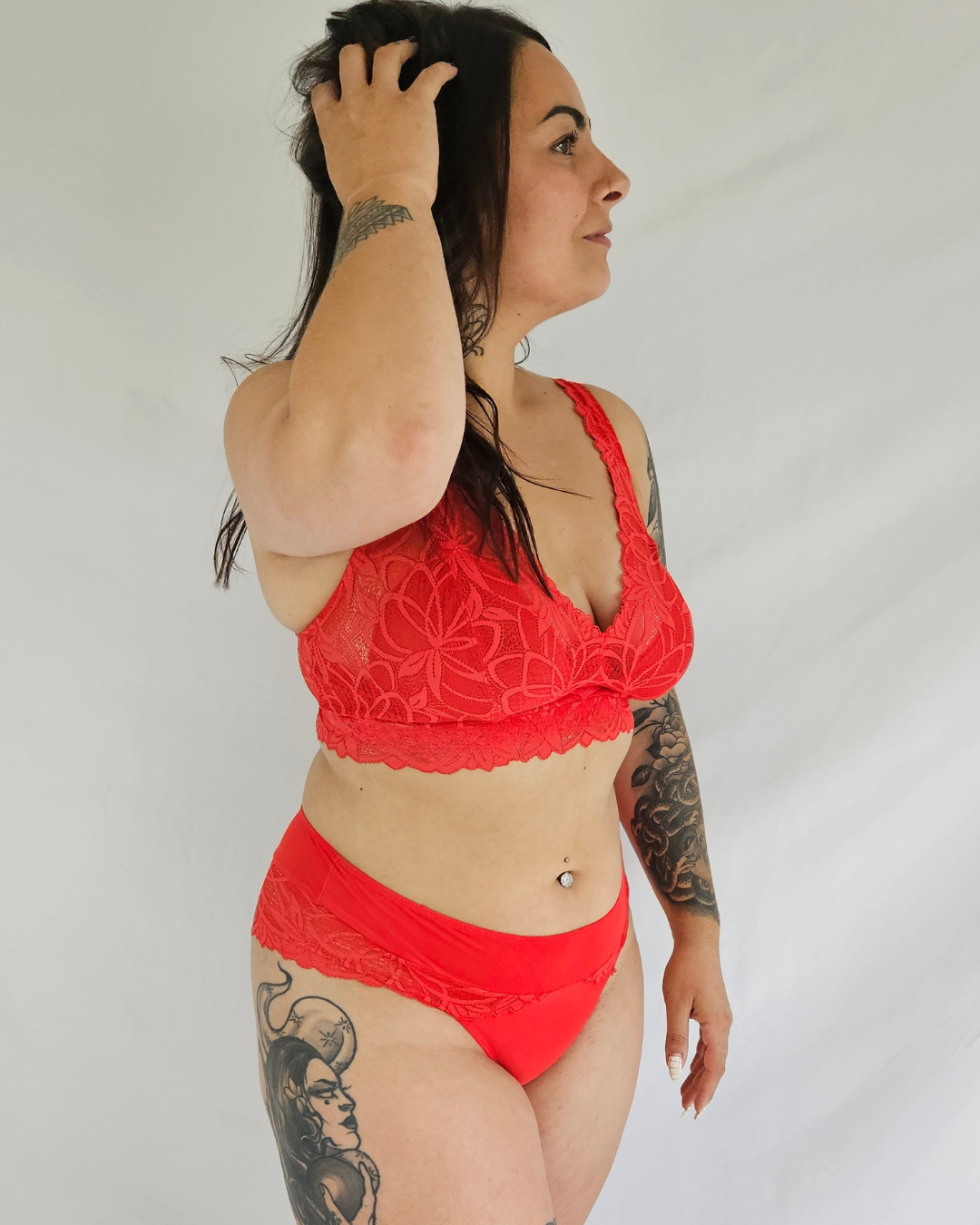 Nous croyons que chaque détail compte pour vous offrir une lingerie qui allie confort, qualité et élégance. C’est pourquoi notre ensemble est conçu avec de la dentelle de Calais Française (85 % polyamide, 15 % élasthanne), soigneusement sélectionnée pour sa douceur, sa légèreté et sa capacité à sublimer vos courbes tout en respectant votre peau.